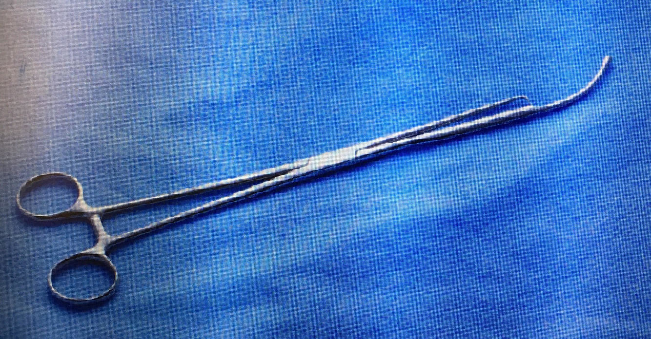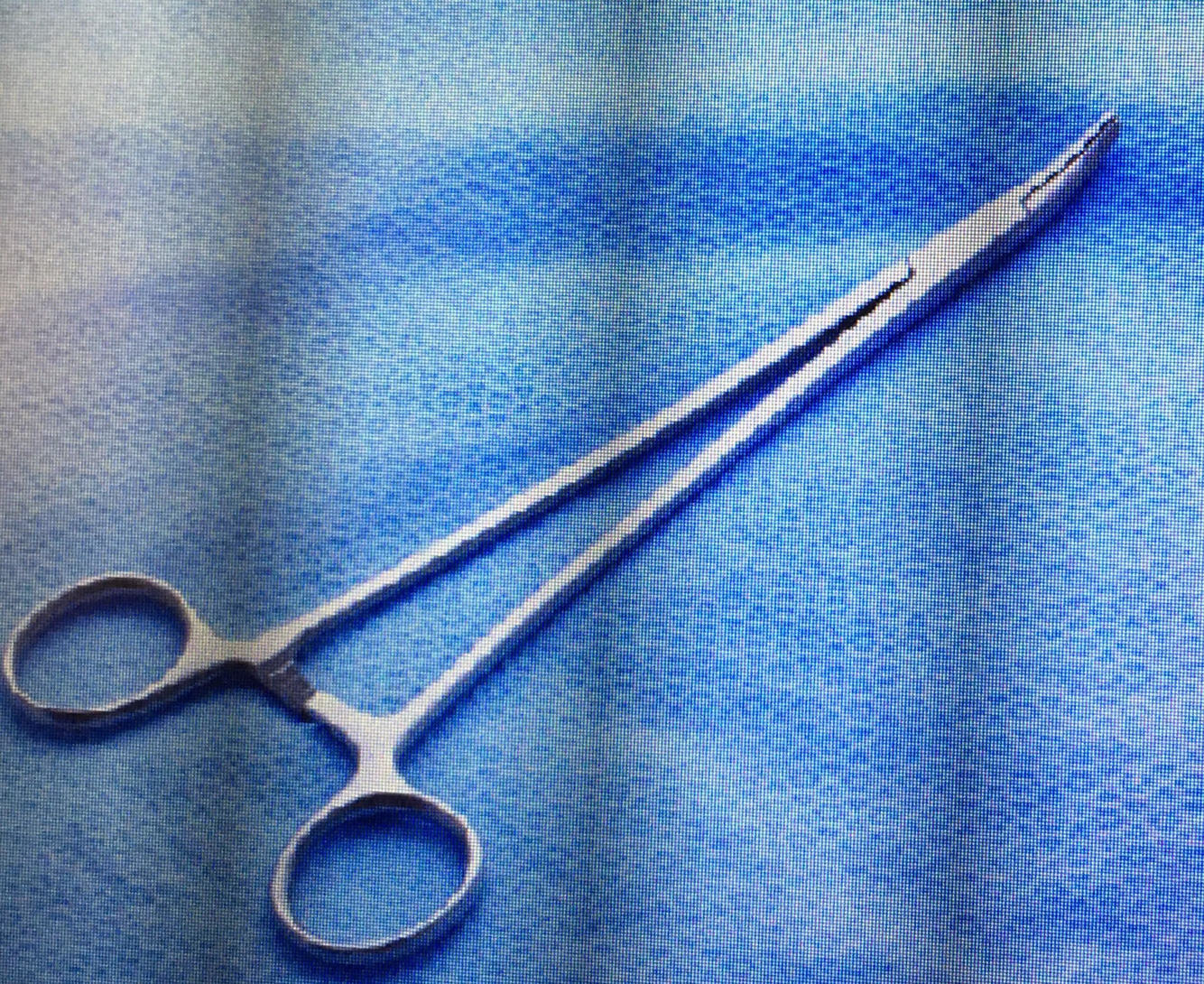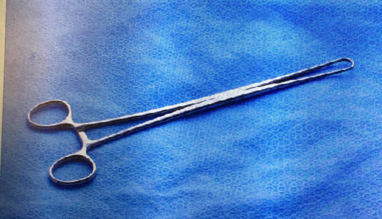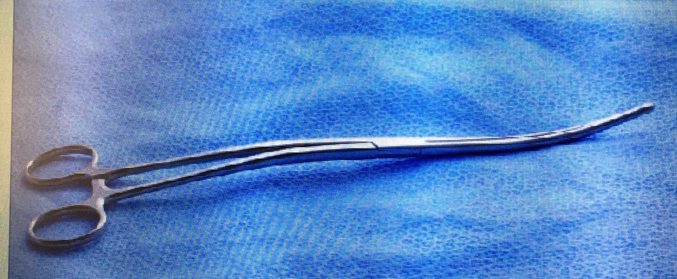 clamp uterine edges after deliver of baby during a C-section, grasp ovary or ovarian cyst