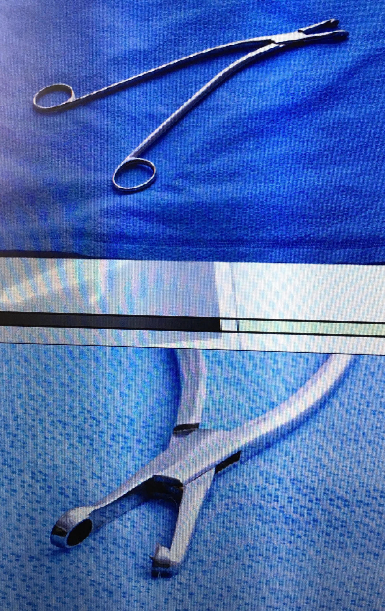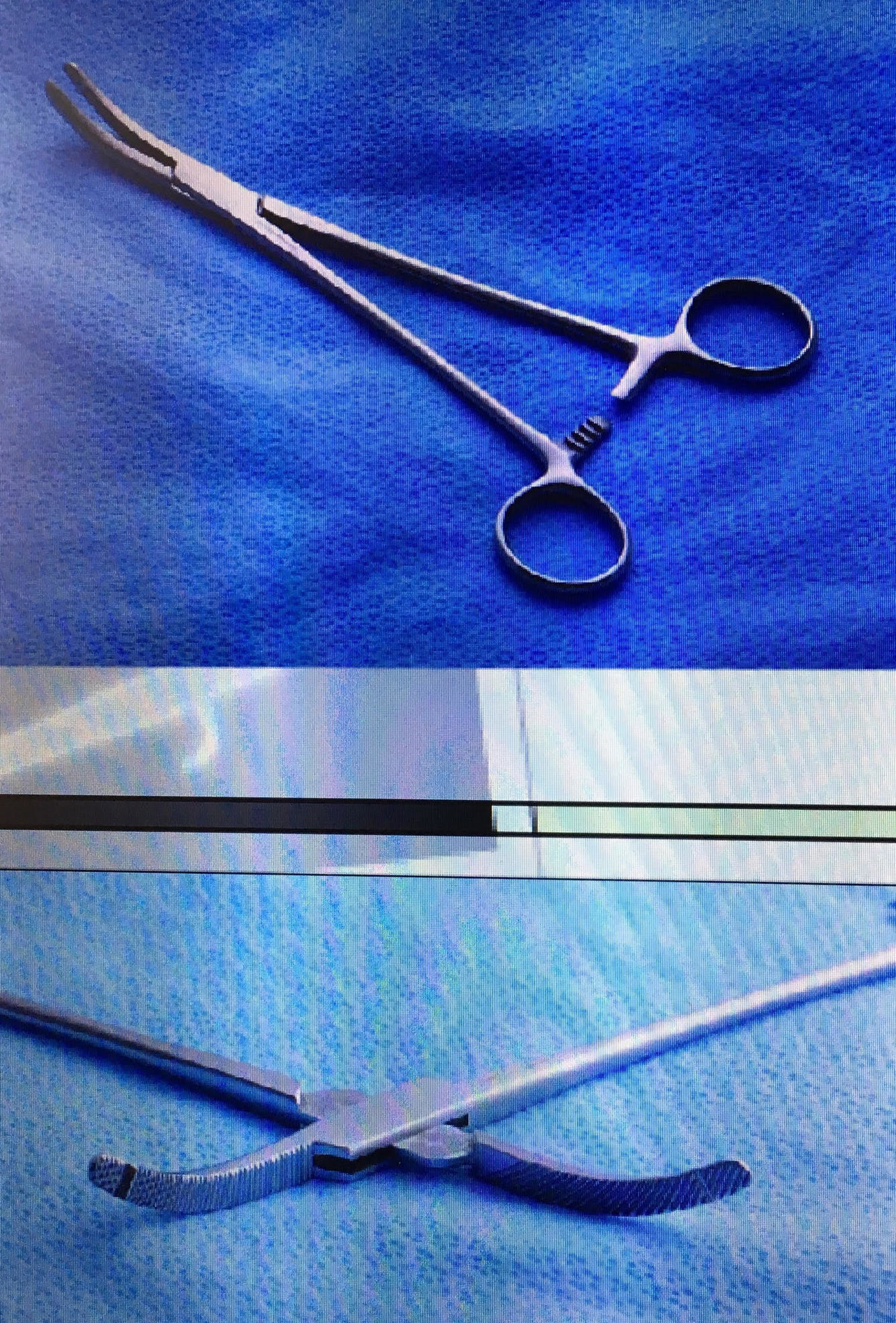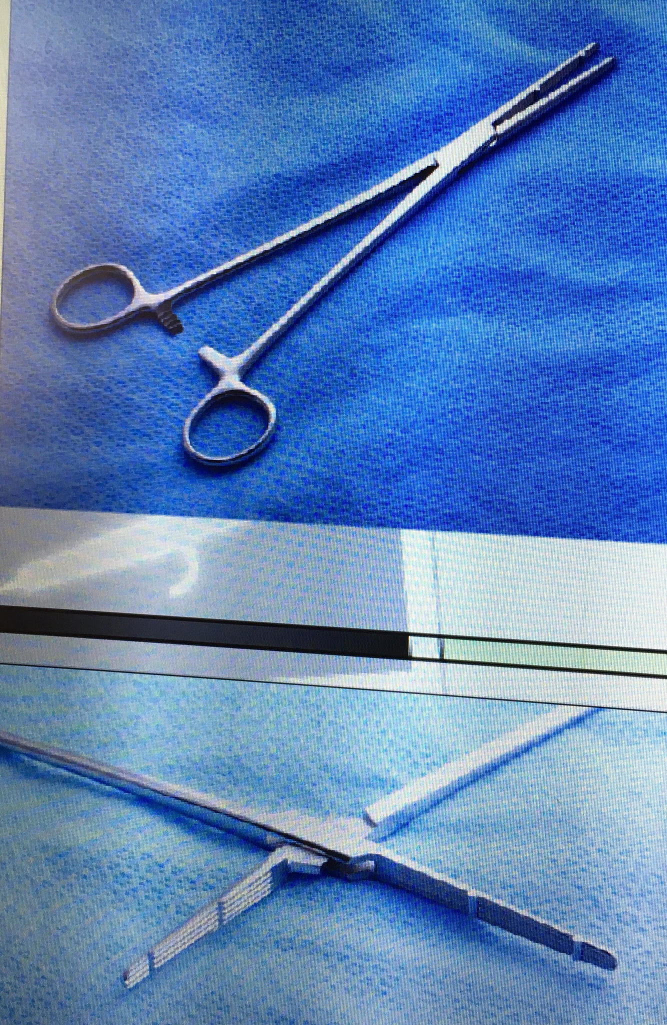 clamp uterine edges after deliver of baby during a C-section, grasp ovary or ovarian cyst