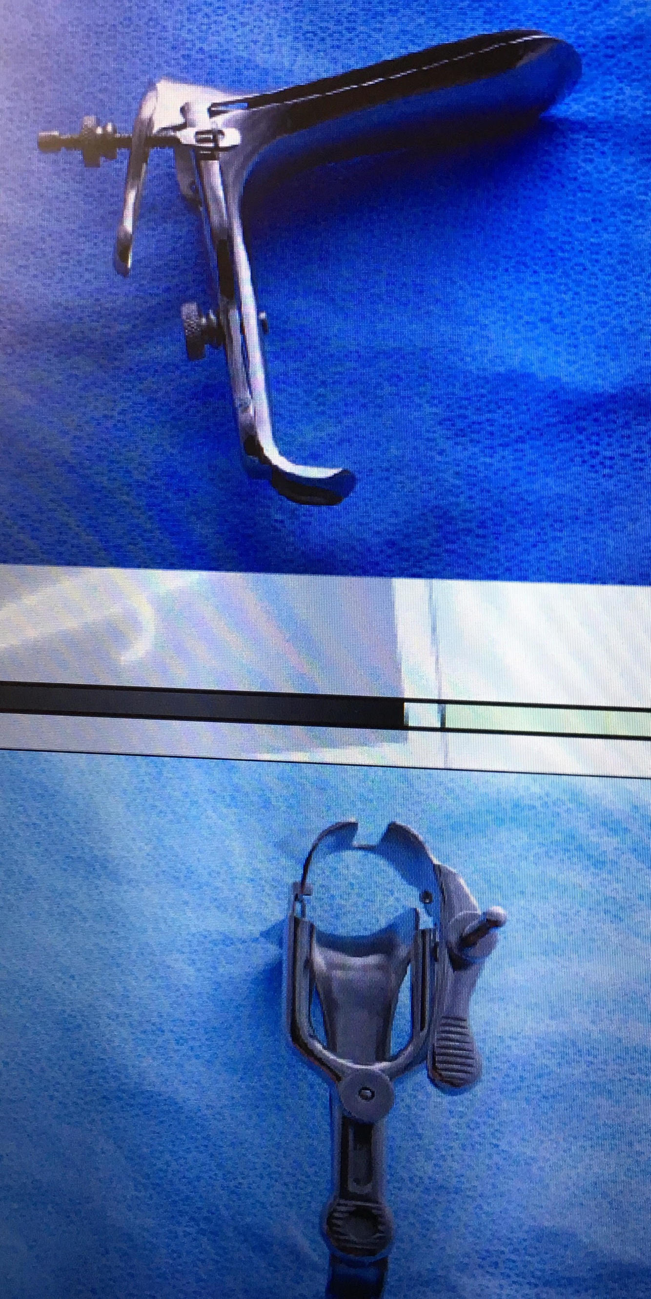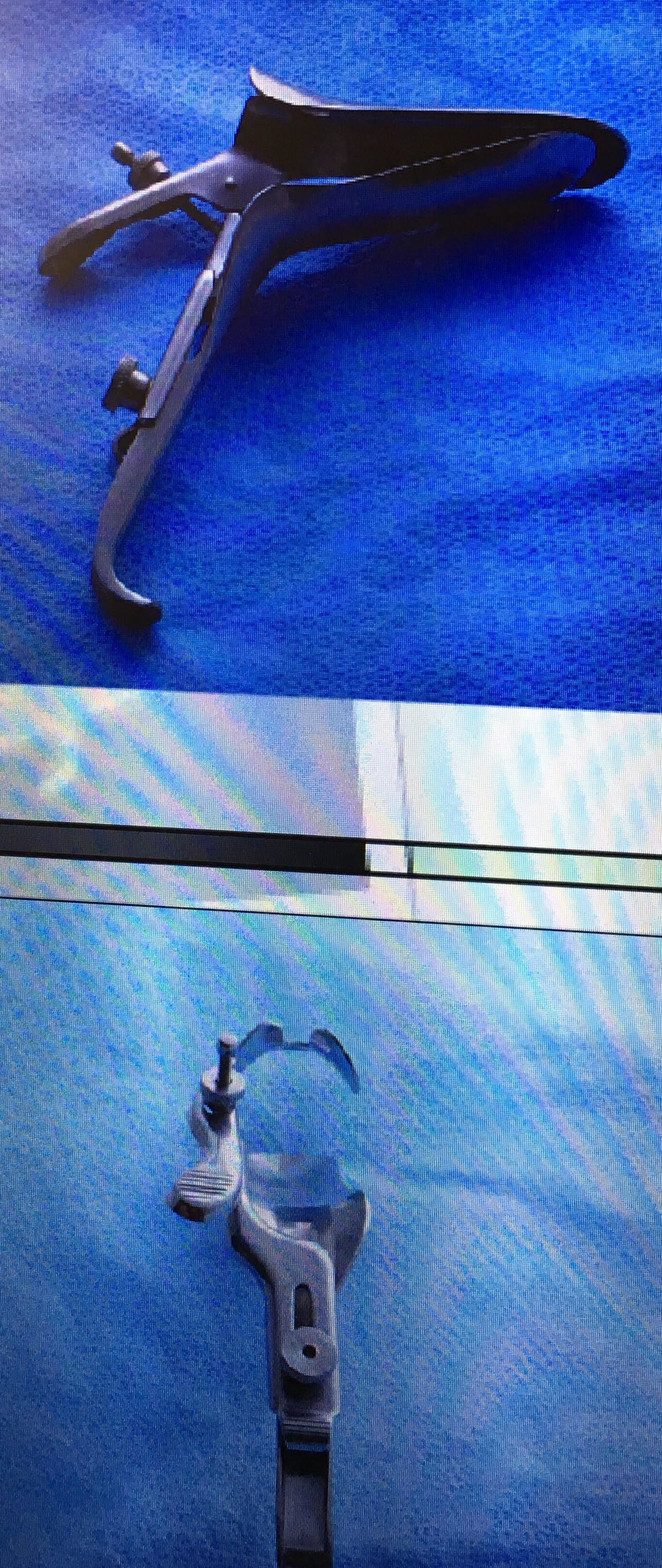 hold open vaginal walls, ebonized to be nonreflective for laser use, built in suction port for laser plume evacuation
