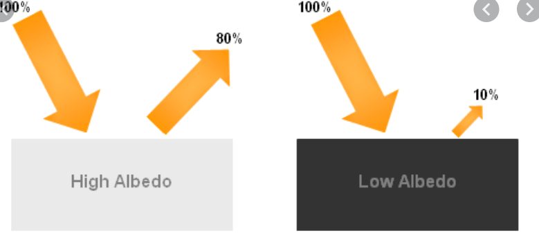 Albedo is a measurement of an object’s ability to reflect sunlight, measured on a scale of 0 to 1. An object that has perfect reflectance has an albedo of 1, and an object that is a perfect absorber has an albedo of 0.