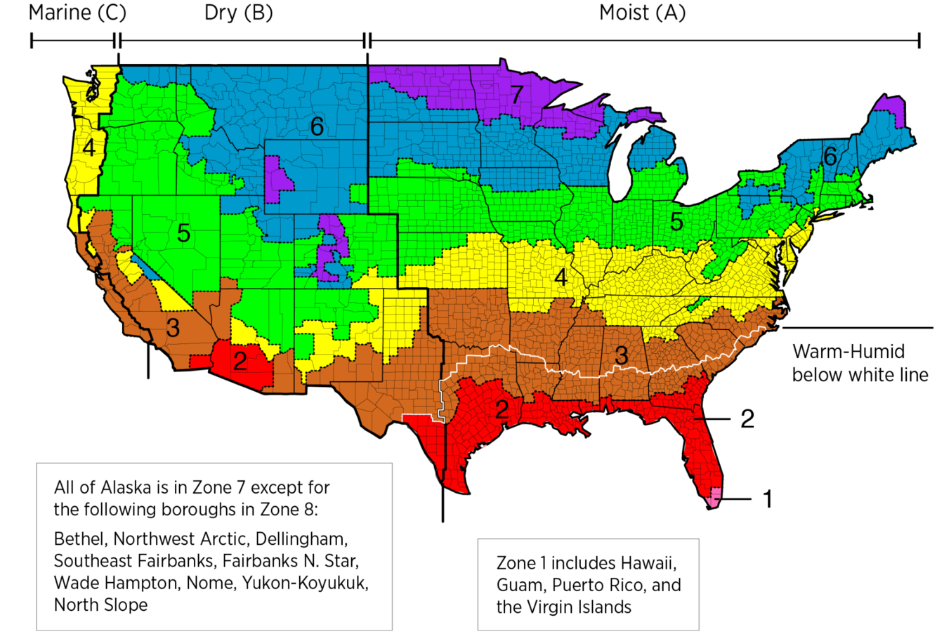 The four main climate type groups. Cold climates tend to be cold year-round (Montana, Alaska, etc.). Temperate climates are warm in the summer months and cooler the rest of the year (majority of states). Hot and arid climates are hot year-round with little to no precipitation (parts of California, Arizona, New Mexico). Hot and humid climates are hot year-round with high humidity (Louisiana, Florida, Hawaii, etc.).