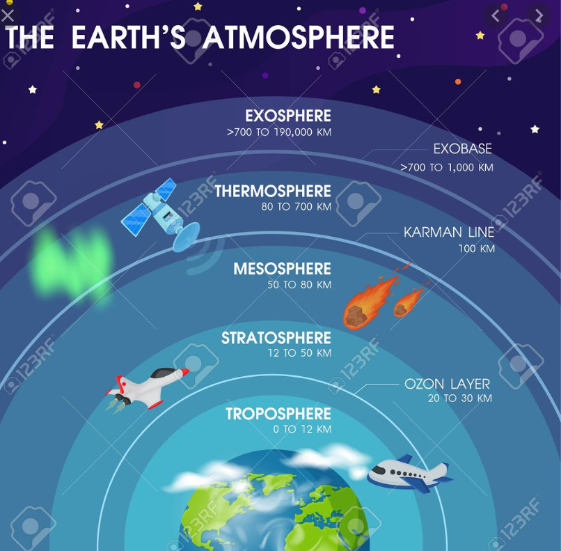 Area of earth from surface to five miles up into the troposphere.
