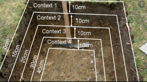 10-foot trenches dug at a job site that allow visual inspection of the soil strata and direct collection of undisturbed samples; soil below 10 feet cannot be directly examined.