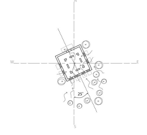 Temperate: Maximize solar gain in the winter, minimize solar gain in the summer, maximize summer breezes, and minimize winter wind. Cold: Install south-facing windows to maximize solar gains; building openings should be small and placed where they are protected from wind to avoid heat loss.