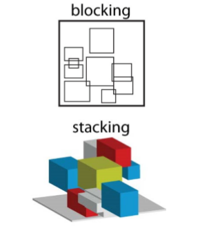 Stacking: Assigning floors to specific programs. Placement of the bock within a building volume which shows the organization being studied and 3D adjacencies, where each unit is represented by a volume of space as quantified by the program data. Both are based on adjacencies and program requirements.
