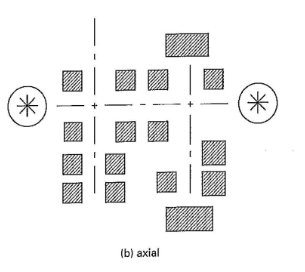 This organizational concept is best used on one space or point around which secondary elements are placed. It is often used in combination with axial or linear plans.