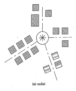 This organizational concept has more than one linear organization that extends from a centralized point. It has a central focus, as well as the potential to extend outward to connect with other spaces or expand. It can be circular or assume other shapes.