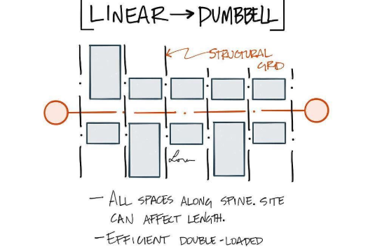 This is a circulation pattern that is laid out on a long, straight path that connects two major elements at either end.