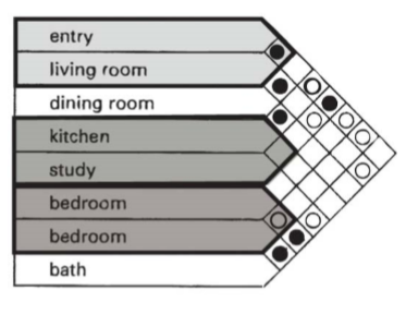 Thick line = mandatory adjacency→ Example: entry , study, and living room need to be close to each other