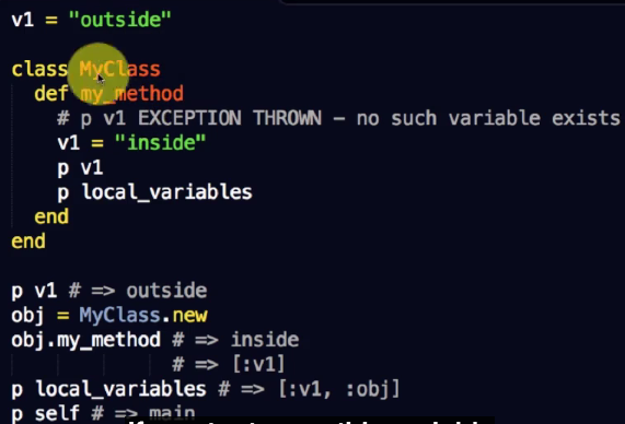 # define v1 = "outside" outside of a class define v1="inside" inside of a class MyClass,