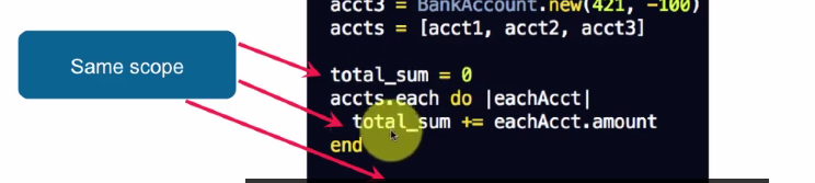 Blocks remember the context in witch they where created, and uses that context whenever it is called.