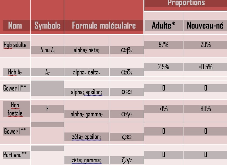 Variétés d’Hb Humaines normales