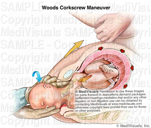 Alternatively, the posterior shoulder may be rotated forward, through a 180 degree arc, and pass under the pubic ramus as in turning a screw. As the posterior shoulder rotates anteriorly, delivery will often occur. (p. 410)