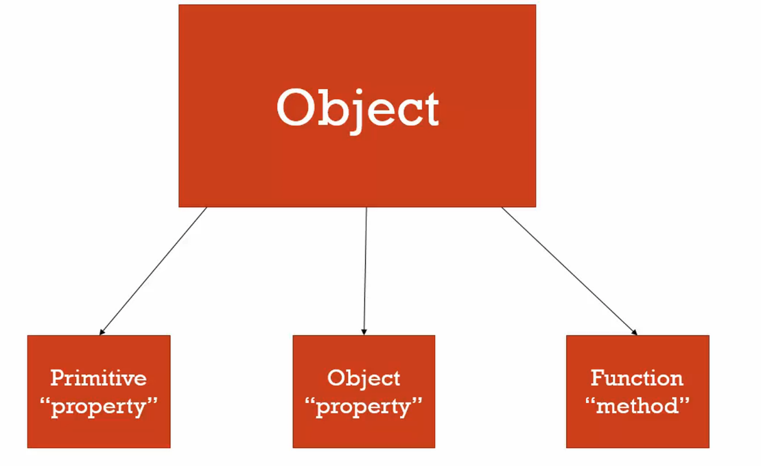 Objects have properties and methods and properties can be either a primitive value or another object.