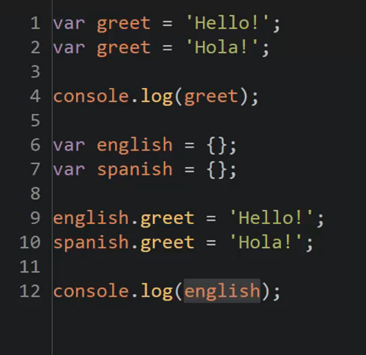 var english = { greetings: { greet: ‘Hello!’ } };