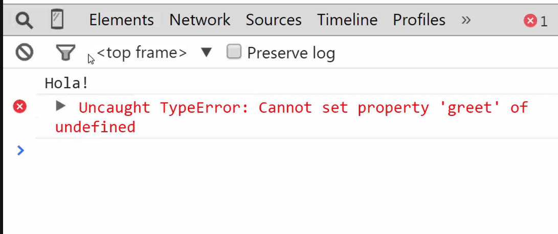 So, first it would look for english.greetings and wouldn’t find anything. So, english.greetings is undefined and so it wouldn’t be able to find greet because it would be looking for undefined.greet then.