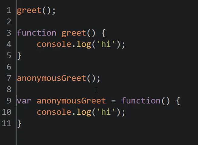 greet is a function(function statement) and so it is hoisted in its entirety and is available for invocation during the execution phase. But, anonymousGreet is set to a variable(function expression), which is only set to undefined in memory and so cannot be invoked during execution phase since we’re invoking it before we’ve defined the function below it in the code.