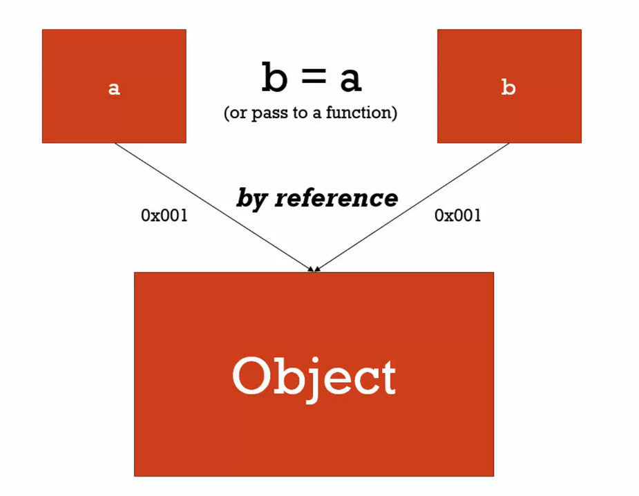 The difference between them is that variables assigned to objects always point to the same place in memory, regardless of how many variables are sharing an assignment to that object. It’s important to remember that