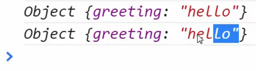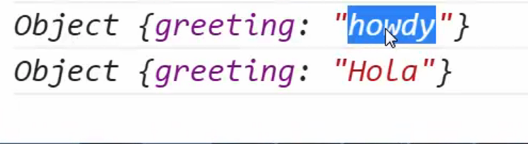 The result would be two different logs. The reason for this is that even though initially both variables were pointing to the same object in memory by reference, the assignment operator recognized that { greeting: ‘Howdy’} did not exist in memory yet and so was assigning new memory space for this. It checks the value before creating the reference - if the value exists it will simply refer to the pre-existing value, if it doesn’t exist then it will set up the memory space for the new location for the new value.
