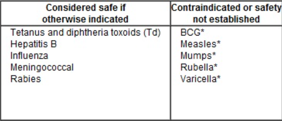 Name safe (5) and contraindicated (5) vaccines in pregnancy