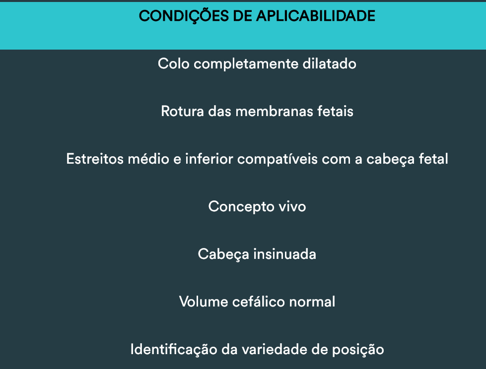 Critérios de aplicabilidade do Fórcipe