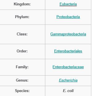Genus and species: Escherichia coli