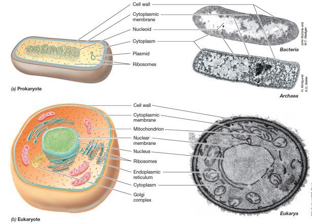 Eukaryotes are nucleated cells and include both microbial and multicellular organisms.