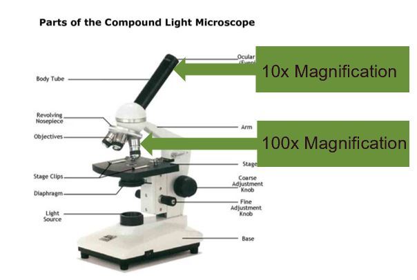 Max magnification of 1000x (10 x eye piece, 100x objective)