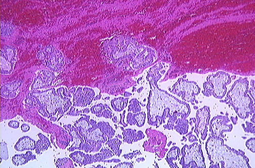 Histology of an ectopic placenta just prior to rupture would reveal: