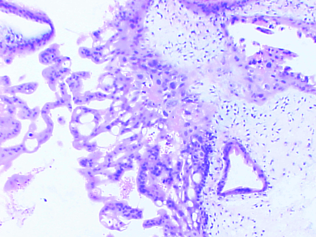 (Vili + lots of blood = ectopic ruptured pregnancy)