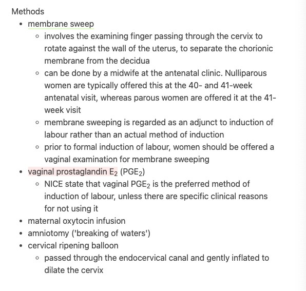 methods for induction of labour
