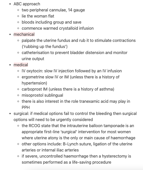 Postpartum haemorrhage (PPH) mx?