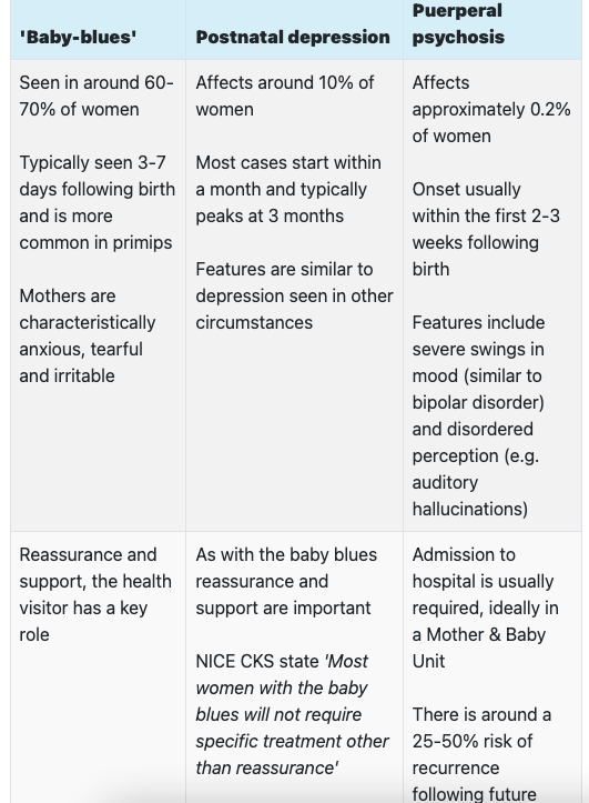 baby blues vs postnatal depression vs puerperal psychosis