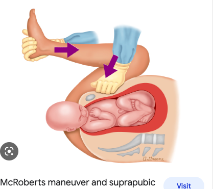 What is the first line management for shoulder dystocia?