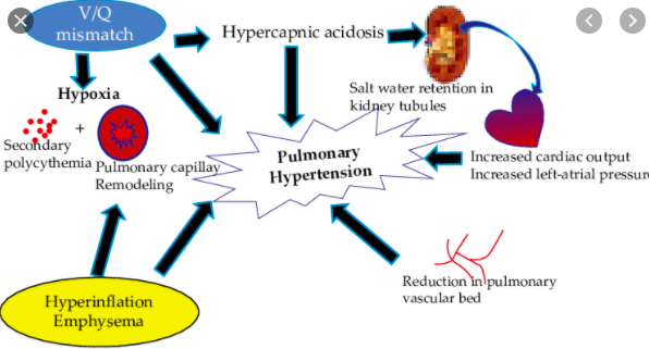 How does COPD leads to pulmonary hypertension?