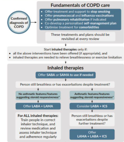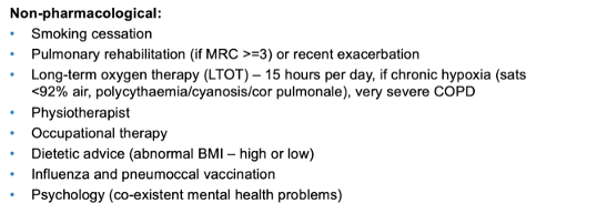 Outline the BTS guidelines for the treatment of COPD