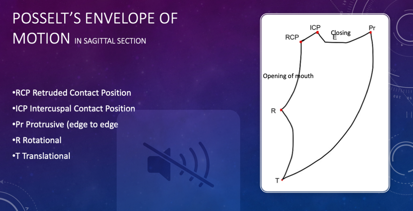 *when chewing: md swings laterally, forward, when closing returns back into centric stop