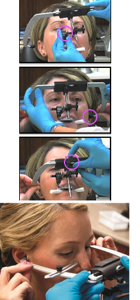 Assemble the facebow on the patient by sliding the bitefork arm through clamp marked #2