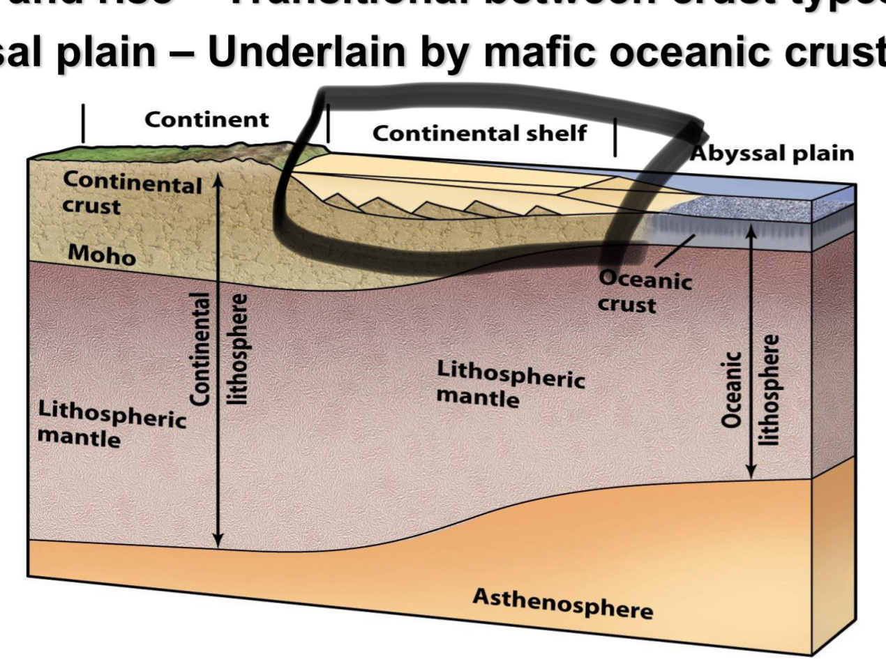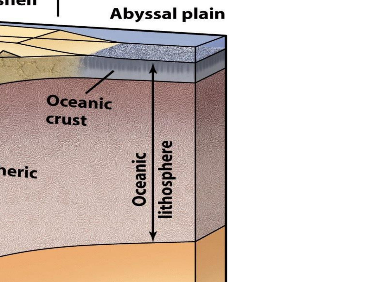 Ocean basins are deep in mantle And continuously grow because seafloor spreading creates more and more lithosphere / oceanic layers with cooled magma