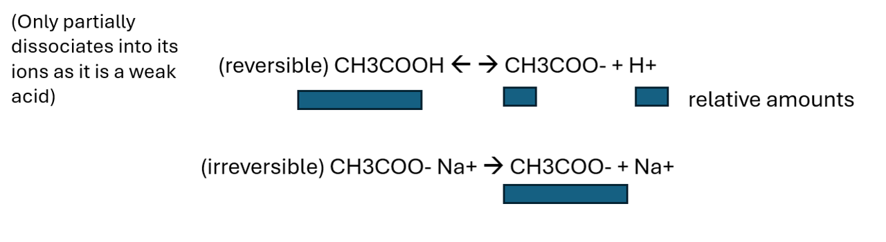The extra H+ ions make the POE shift to the left by reacting with CH3COO-