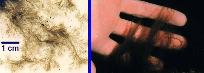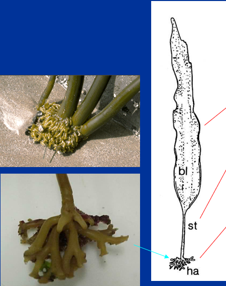 holdfast: consisting of digitations, called haptera, growing in the cracks of the substrate (it is not the typical discoid holdfast of brown algae)