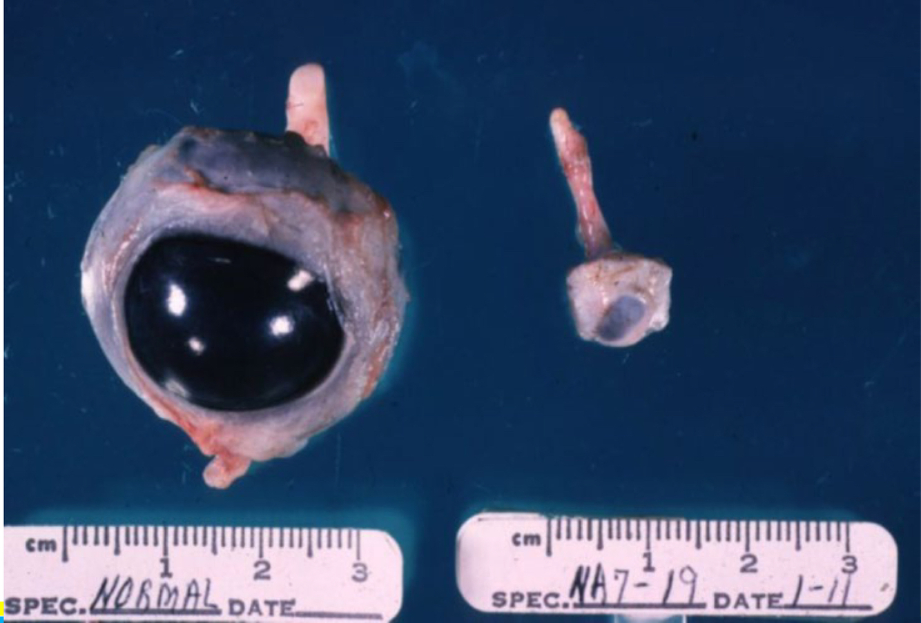 congenital/hereditary anomaly where one or both eyes are abnormally small and are histologically malformed and disorganized