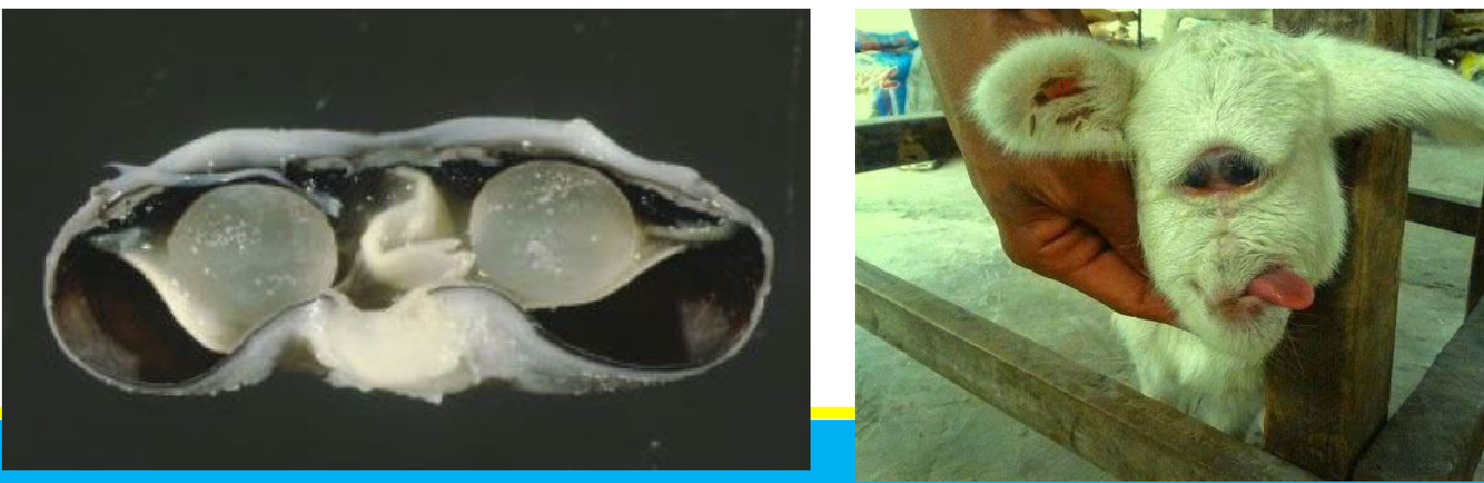 What is the most common cause of cyclopia and synophthalmos in sheep? When in embryonic development is this able to happen?