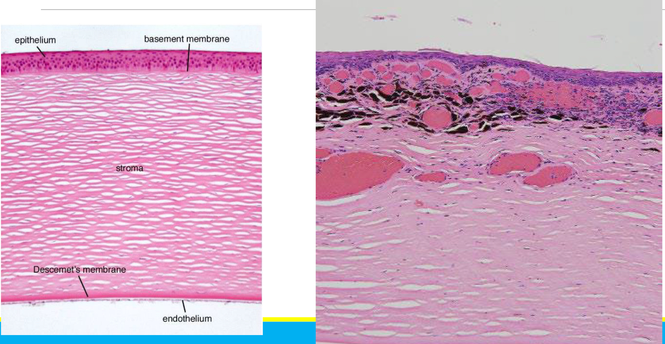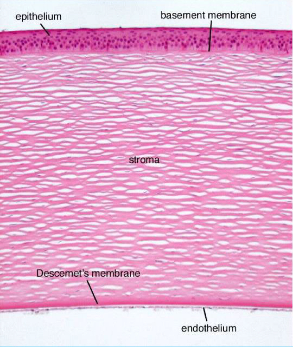 cornea —> outermost, exposed layer