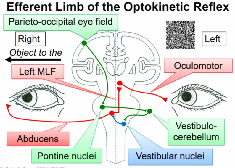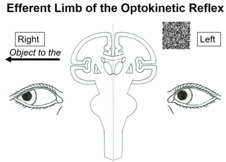 describe the reflex and direction of the nystagmus when rotation is stopped (originally to the right)