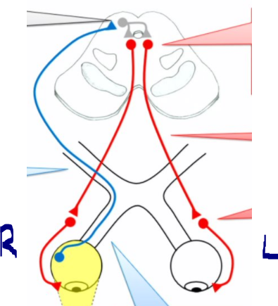 describe the relfex and the direction of nystagmus during the start of rotation to the right