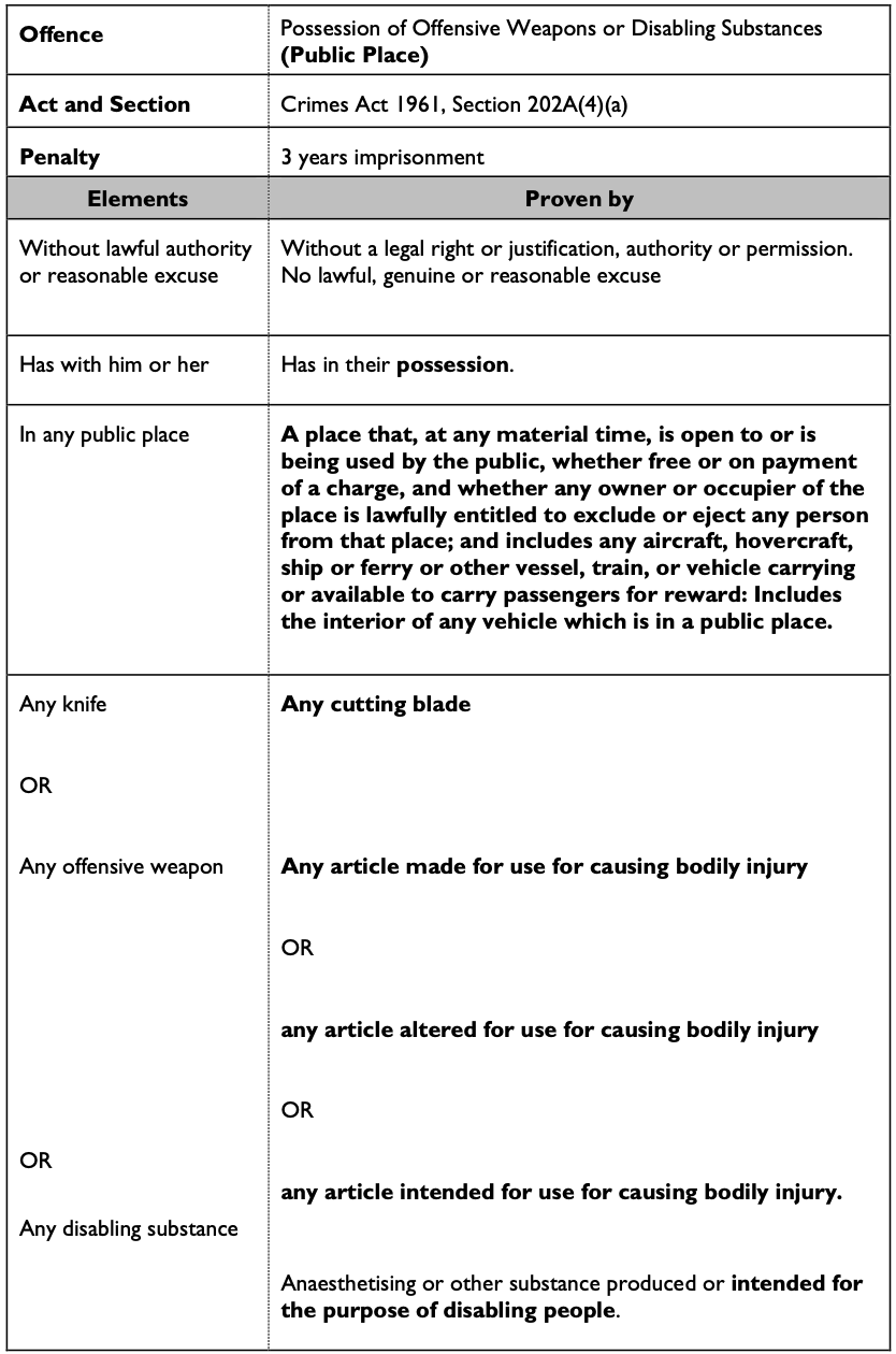 What are the elements of ‘Possession of offensive weapons or disabling substances (Public place)’?