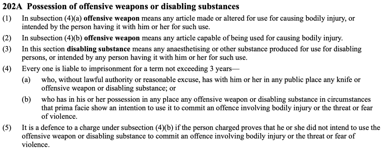 If the person can prove that they did not intend to use the offensive weapon or disabling substance to commit an offence involving bodily injury or the threat or fear of violence.