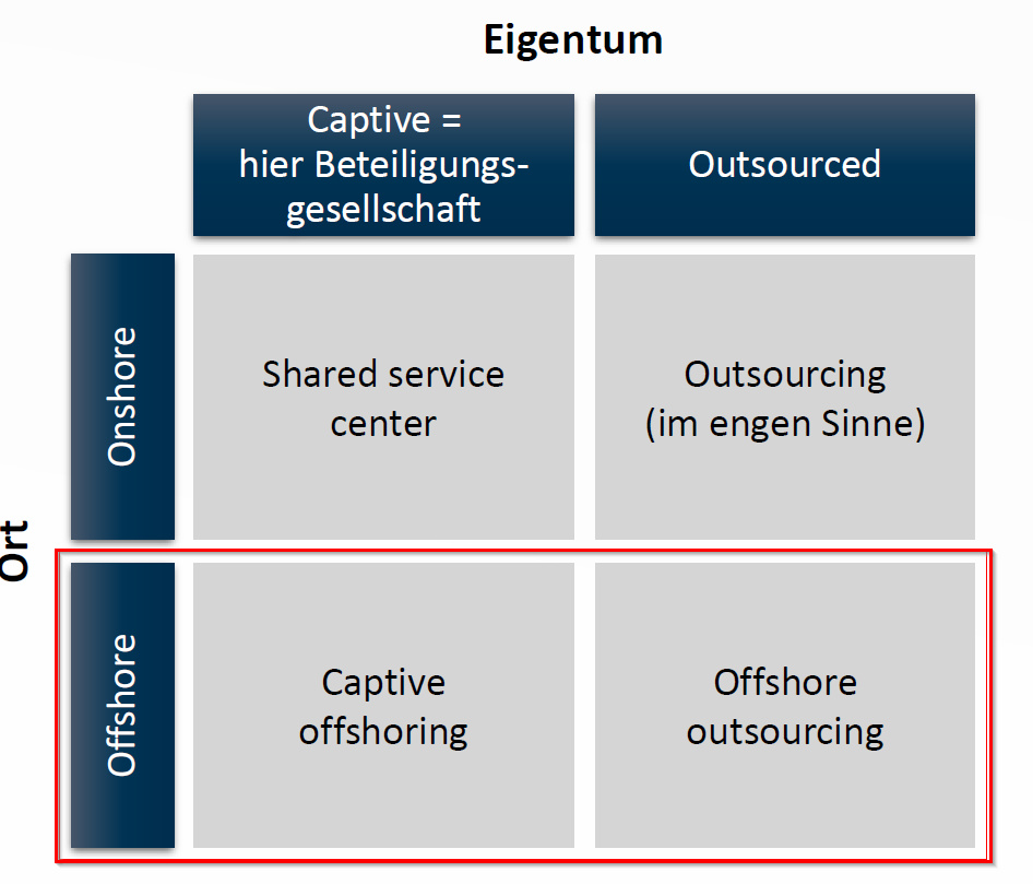 Welche 2 Arten von Offshoring existieren und wie können sie hinsichtlich Ort sowie Eigentum klassifiziert bzw. eingeordnet werden?