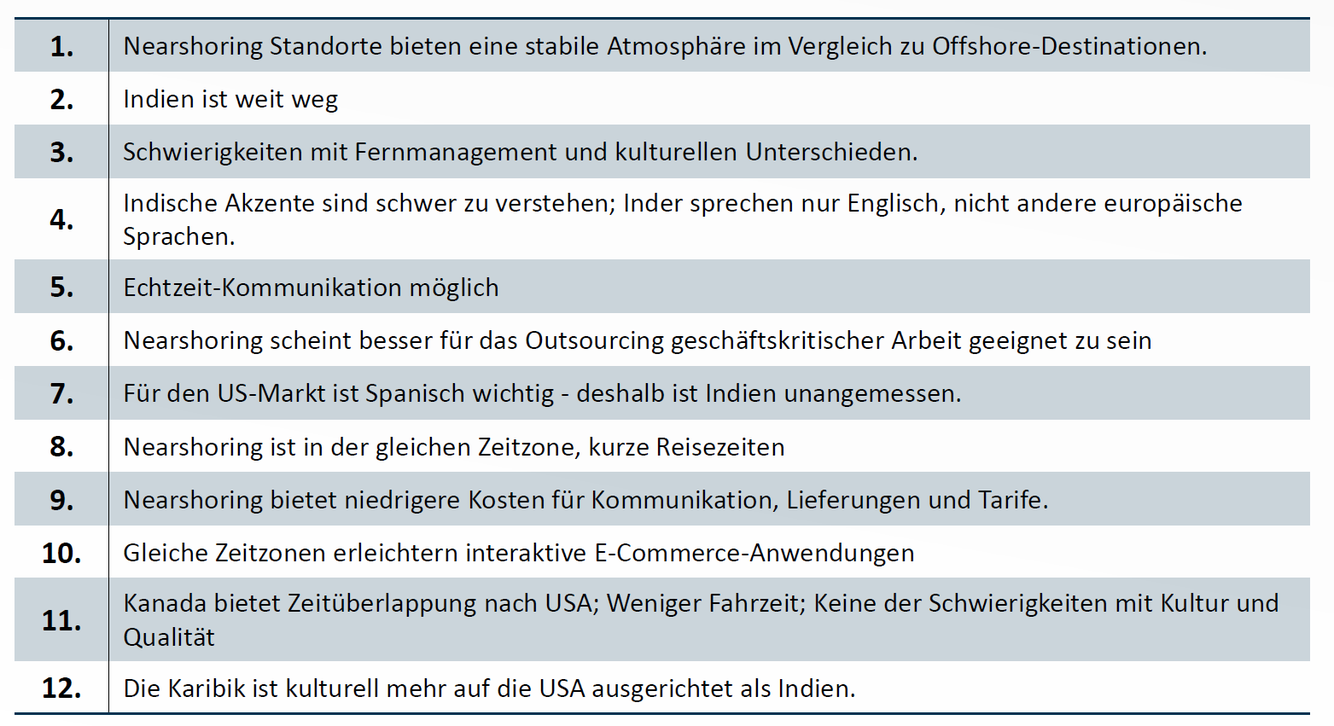 Nenne 3 bis 5 Vorteile von Nearshoring im Vergleich zur farshoring-Destination Indien
